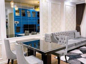 - Đặc biệt, căn hộ được trang bị hệ thống nội thất cao cấp, hiện đại: trần sơn nước hoàn thiện, sàn gỗ công nghiệp cao cấp, cửa thông minh, thiết bị nhà tắm, nhà vệ sinh, hệ thống đèn chiếu sáng,…